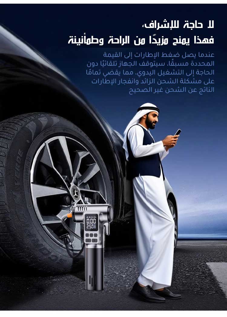 مضخة هواء لاسلكية ومطرقة أمان للسيارة 2 في 1