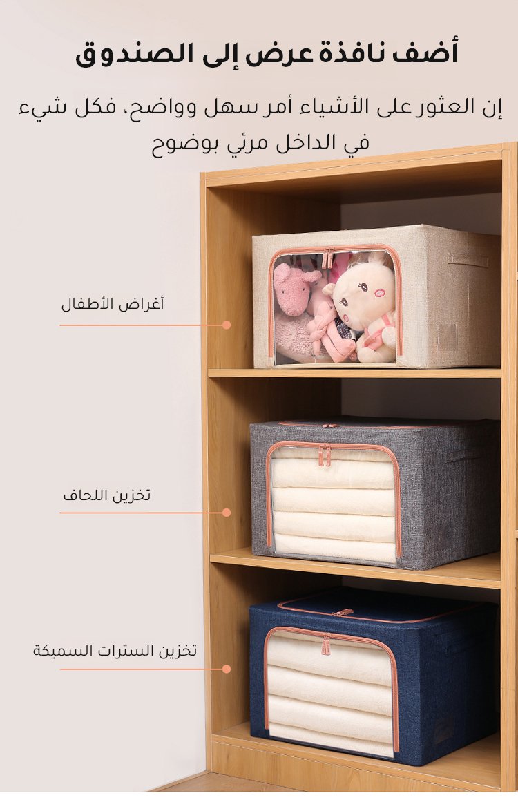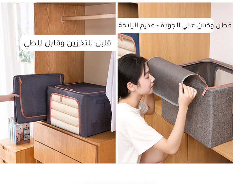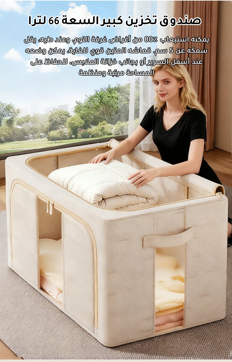 صندوق تخزين كبير السعة من الكتان والقطن