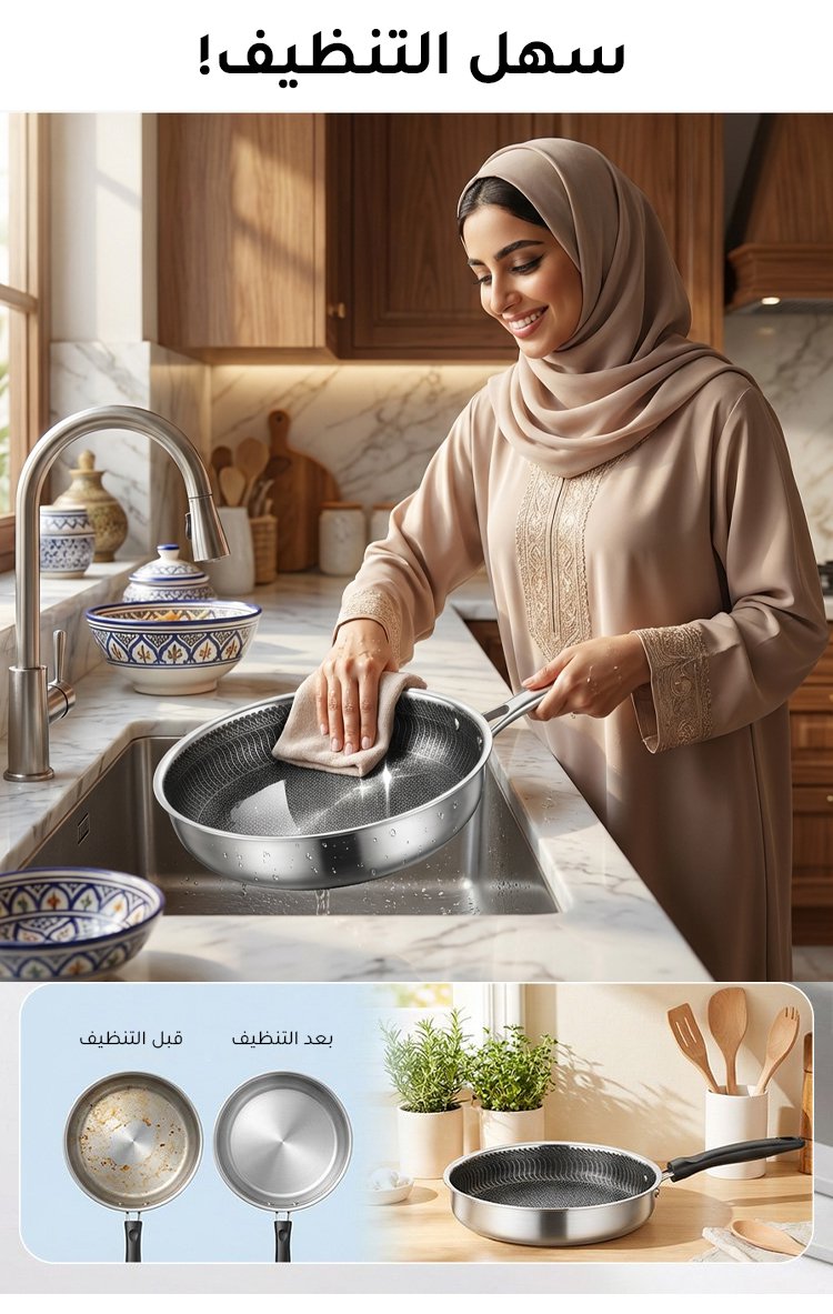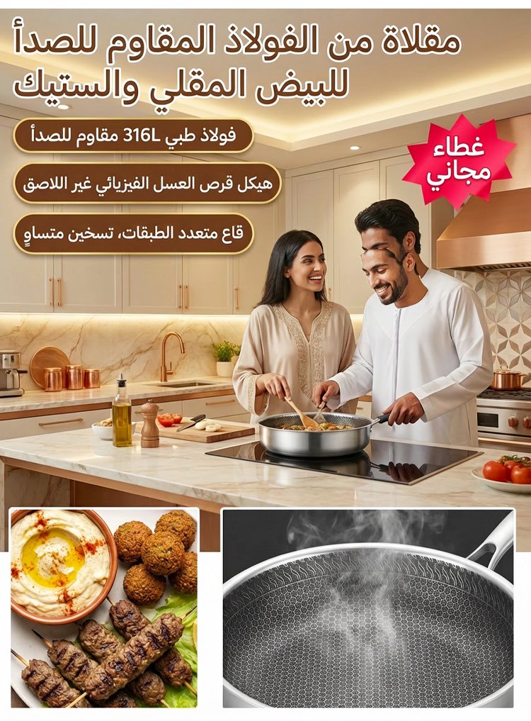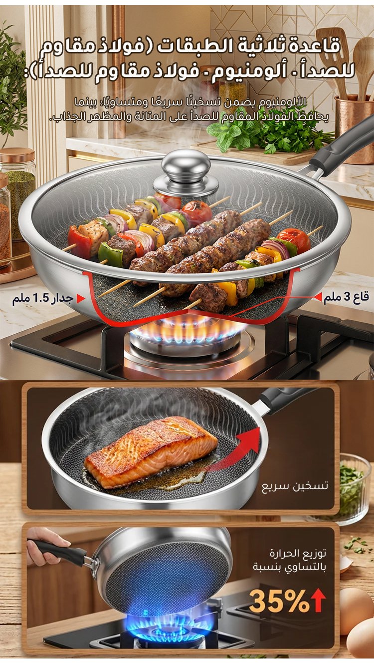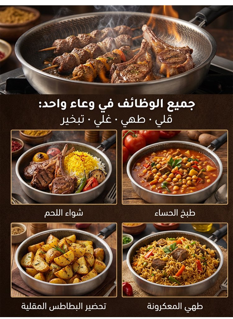 مقلاة من الفولاذ المقاوم للصدأ(قلي البيض / قلي شرائح اللحم)
